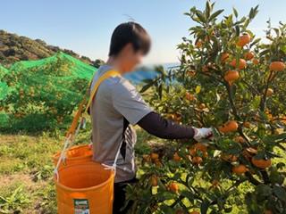 みかんを守るために、自活館チーム、ミカン畑をパトロールです。