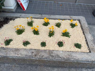 右側の花壇に植えてあったマリーゴールドを抜いて、そこには日本平で育てているパンジーを植えようかな・・・とのことです。