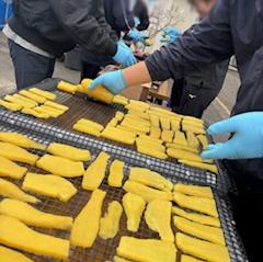 こちらの写真は、クリスマス会に父母が来られるのにあわせて、干し芋づくりをしています。